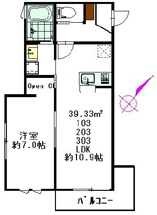 1LDK /39.33m² / 3階建3階部分