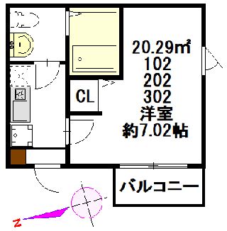 1K /20.29m² / 3階建3階部分